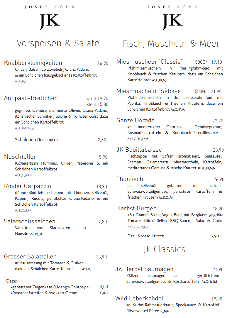 Auszug aus unserer Speisekarte